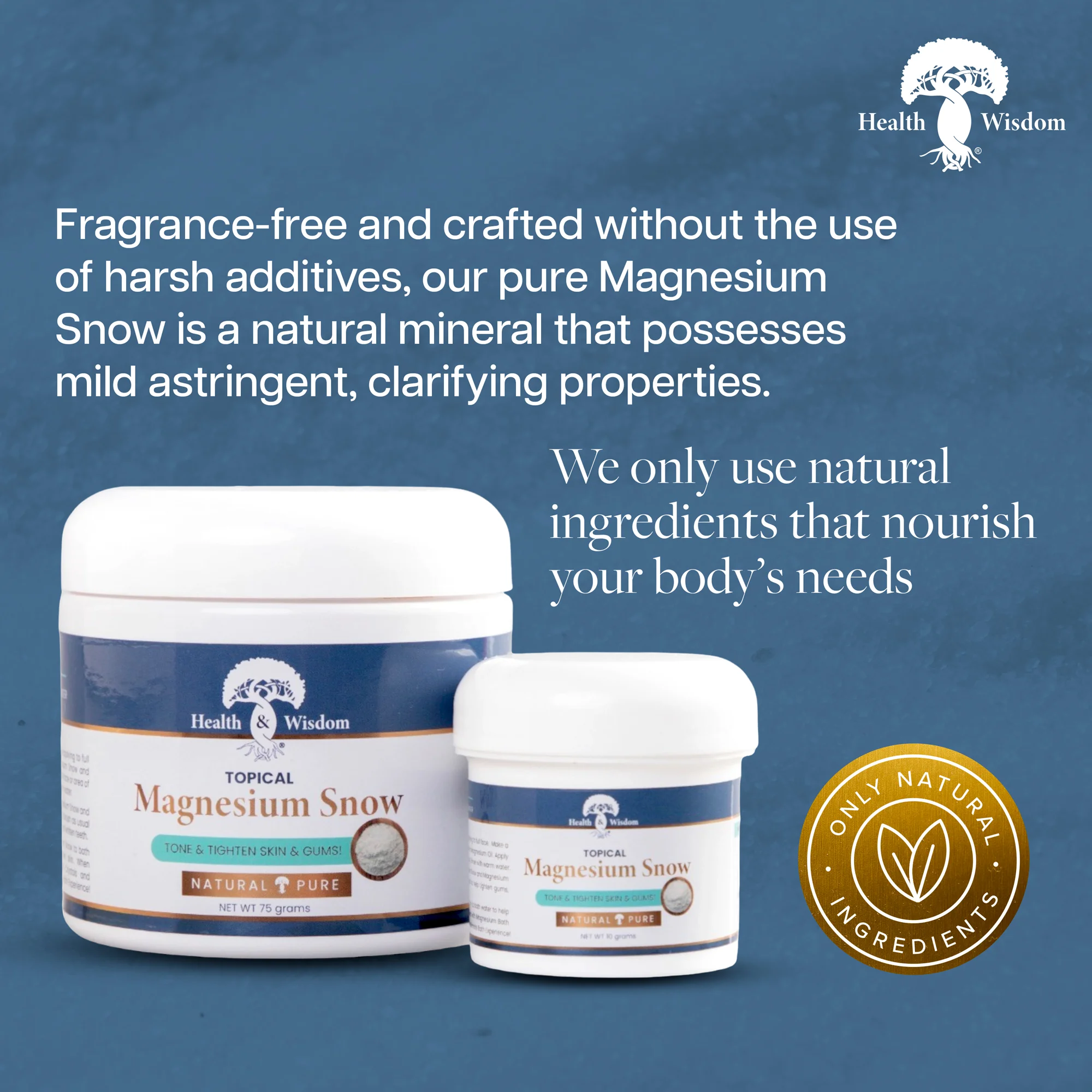 Magnesium Snow is a natural mineral that possesses mild astringent, detoxifying properties.